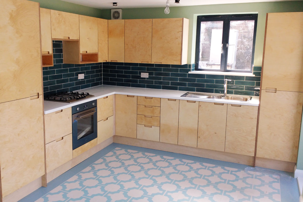 Bespoke plywood formica doors and worktops, working with CNC Cutting in Lewes